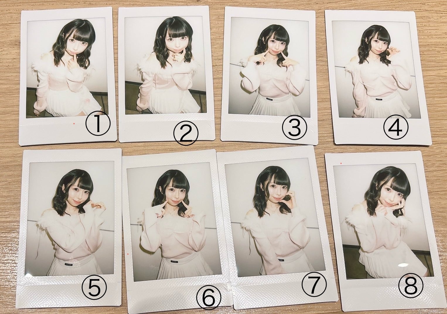 商品ページの画像をご参考に、どちらのチェキが良いか番号をご選択の上お申し込みください。