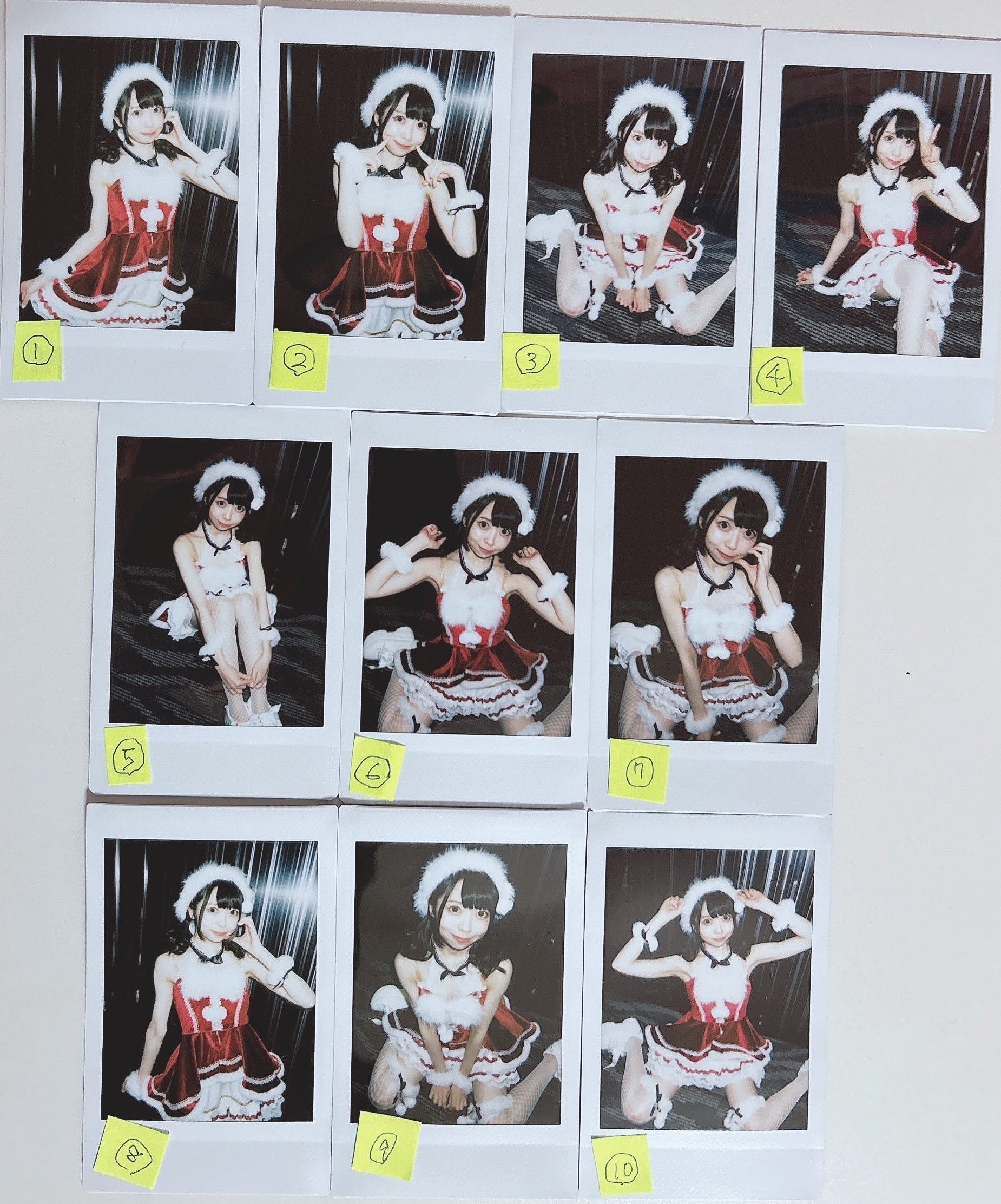 商品ページの画像をご参考に、どちらのチェキが良いか番号をご選択の上お申し込みください。